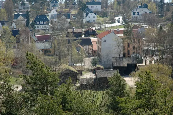 Norsk Folkemuseum. Utsikten mot Gamlebyen og Wessels gate 15 fra lift som var oppe ved stavkirken.