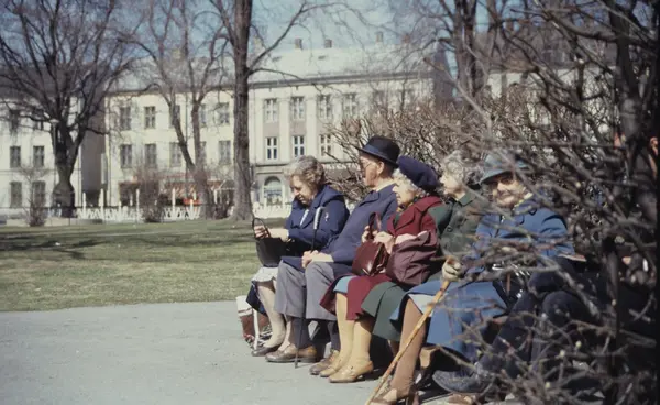 Eldre mennesker på en benk i park på Olaf Ryes plass i Oslo. Bildet er antagelig tatt i forbindelse med en artikkel om byfornyelse på Grünerløkka i Oslo.