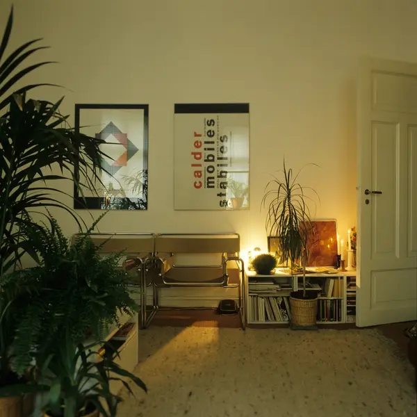 Fra stuen i leilighet i gammel bygård på Bislett i Oslo. Leiligheten er innredet av grafisk designer Enzo Finger. Fotografert for Bonytt 1983.