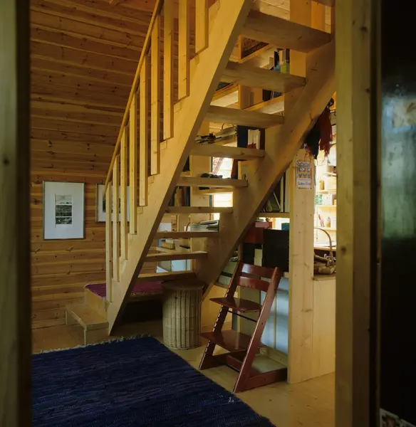 Trapp fra 2. etasje til loft i enebolig, Nordstrand, Oslo. Illustrasjonsbilde fra Bonytt 1983.