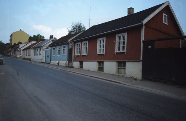 Gammel trehusbebyggelse, Vålerenggata 45-47, Vålerenga, Oslo. Illustrasjonsbilde fra Bonytt 1983.