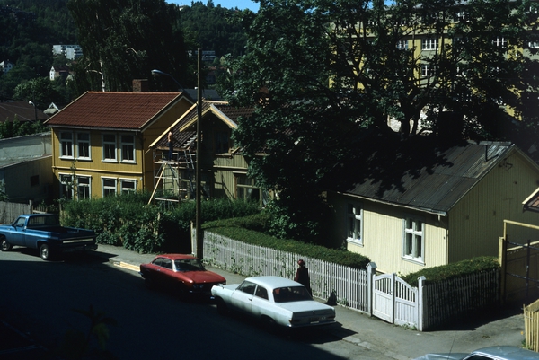 Gammel trehusbebyggelse, Vålerenga, Oslo. Illustrasjonsbilde fra Bonytt 1983.