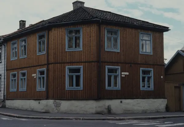 Gammelt trehus på hjørnet Sveriges gate og Danmarks gate , Vålerenga, Oslo. Illustrasjonsbilde fra Bonytt 1983.