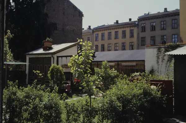 Grønn hage i bakgård i Oslo. Illustrasjonsbilde for Bonytt 1983.