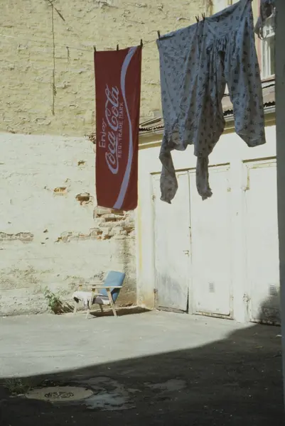 Klestørk i gammel bakgård i Seilduksgata 2, Grünerløkka, Oslo. Illustrasjonsbilde for Bonytt 1983.
