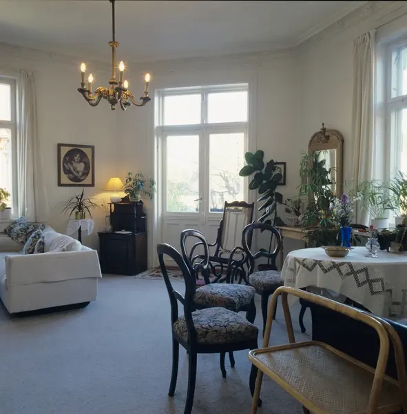 Stuen i nyoppusset leilighet på Frogner i Oslo. Fotografert for Bonytt 1986.