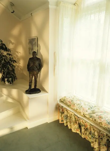 Interiør fra stue, innredningsdetalje,skulptur av mann, illustrasjonsbilde fra Nye Bonytt 1988.