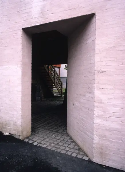 Nytt murhus på Kampen i Oslo. Den skrå veggen leder inn i portrommet og bakgården. Illustrasjonsbilde fra Nye Bonytt 1989.
