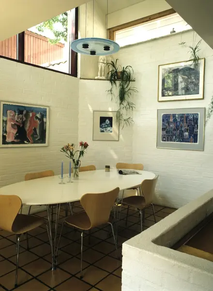 Nytt murhus på Kampen i Oslo. Spiseplassen ligger et trinn opp fra kjøkkenet. Illustrasjonsbilde fra Nye Bonytt 1989.