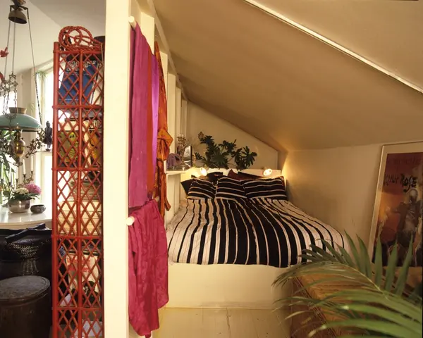 Blokkleilighet etter ombygging, soverommet er skilt fra stuen med en lettvegg. Illustrasjonsbilde fra Nye Bonytt 1989.
