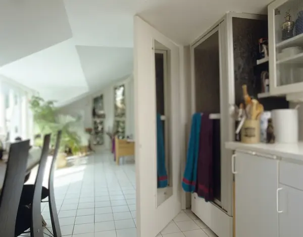 Blokkleilighet etter ombygging, kjøkken midt i leiligheten. Illustrasjonsbilde fra Nye Bonytt 1989.