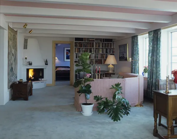 På toppen av bygård i Oslo, stuen med dør inn til soverommet. Illustrasjonsbilde fra Nye Bonytt 1989.