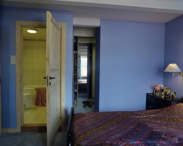 På toppen av bygård i Oslo, fra stuen, soverommet med dør inn til badet. Illustrasjonsbilde fra Nye Bonytt 1989.