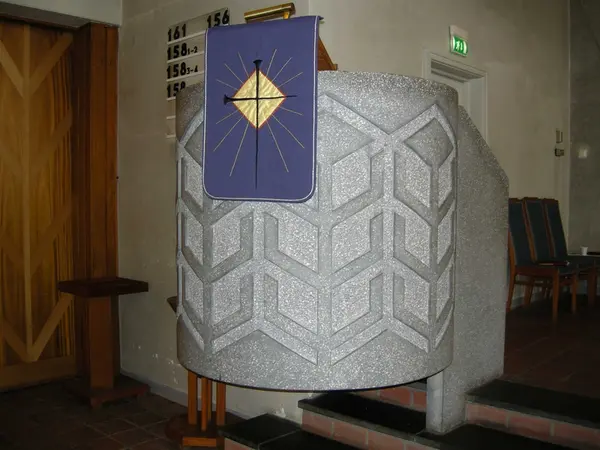 Langfredag i Tonsen kirke, 21.03.2008. Prekestol med lilla klede.