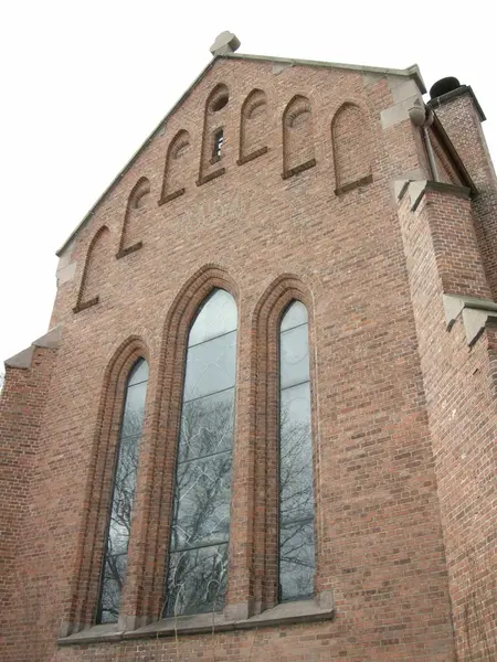 2. påskedag i Vestre Aker kirke, Oslo, 24.03.2008. Fra kirkens eksteriør. Vinduer.