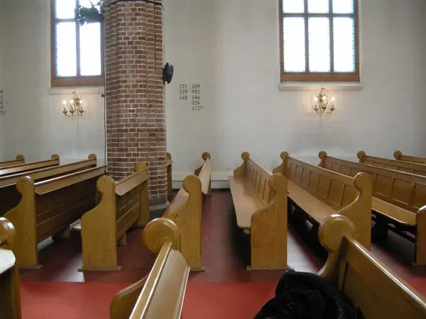 2. påskedag i Vestre Aker kirke, Oslo, 24.03.2008. Kirkebenker.