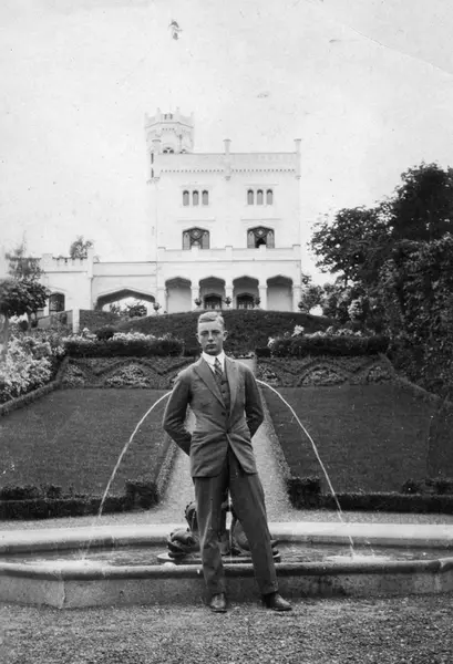 Ung mann poserer foran Oscarshall, 1932.