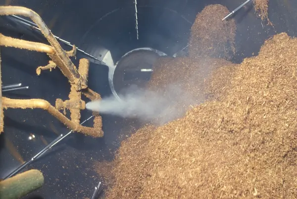 Toppflavoursylinderen innvendig. Fabrikklokale. Tiedemanns Tobaksfabriks kursmateriell om tobakk.