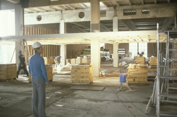 Tre bjelkelag for messanin etg. Tiedemanns Tobaksfabriks regionslager i Oslo. "Vi presenterer oss" - en bildeserie fra Tiedemanns Tobaks regionslagre.