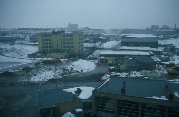 Byggeplass. Konstruksjon av Tiedemanns nye råtobakklager på Hovin i 1978.