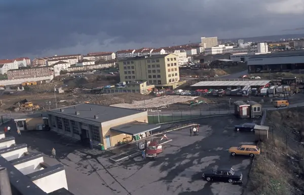 Byggeplass. Konstruksjon av Tiedemanns nye råtobakklager på Hovin i 1978.