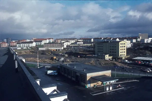 Byggeplass. Konstruksjon av Tiedemanns nye råtobakklager på Hovin i 1978.