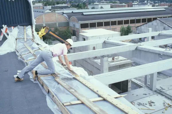 Byggeplass. Utvidelse av Tiedemanns fabrikk på Hovin i 1982-83.