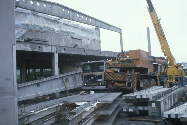 Byggeplass. Utvidelse av Tiedemanns fabrikk på Hovin i 1982-83.