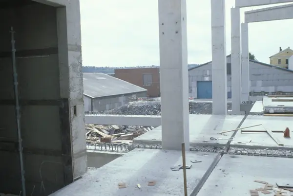 Byggeplass. Utvidelse av Tiedemanns fabrikk på Hovin i 1982-83.