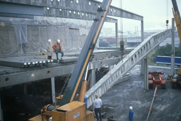 Byggeplass. Utvidelse av Tiedemanns fabrikk på Hovin i 1982-83.