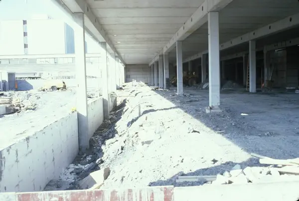 Byggeplass. Utvidelse av Tiedemanns fabrikk på Hovin i 1982-83.