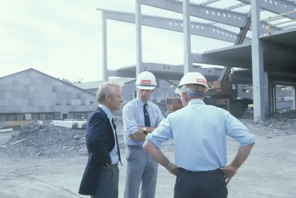 Byggeplass. Utvidelse av Tiedemanns fabrikk på Hovin i 1982-83.