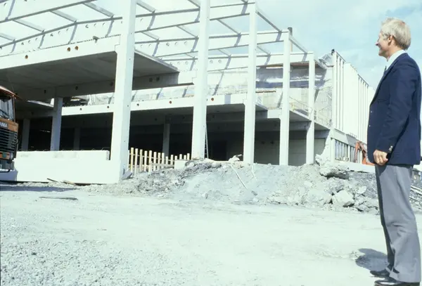 Byggeplass. Utvidelse av Tiedemanns fabrikk på Hovin i 1982-83.