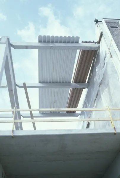 Byggeplass. Utvidelse av Tiedemanns fabrikk på Hovin i 1982-83.