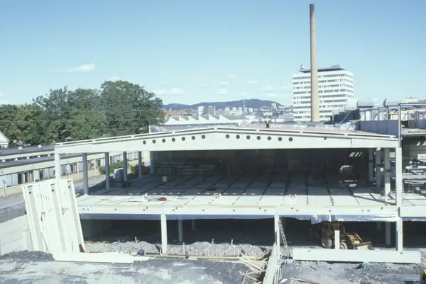 Byggeplass. Utvidelse av Tiedemanns fabrikk på Hovin i 1982-83.