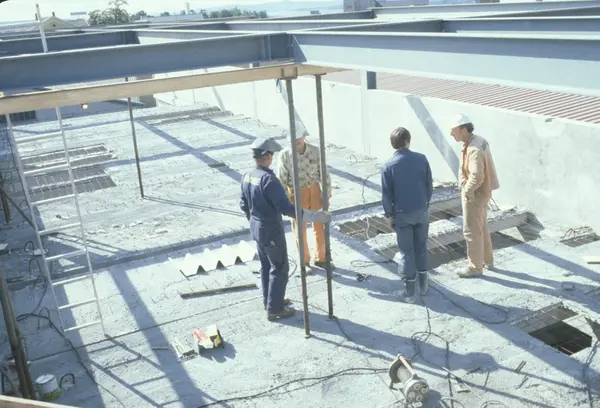 Byggeplass. Utvidelse av Tiedemanns fabrikk på Hovin i 1982-83.