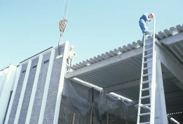 Byggeplass. Utvidelse av Tiedemanns fabrikk på Hovin i 1982-83.
