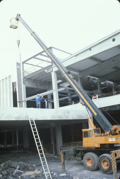 Byggeplass. Utvidelse av Tiedemanns fabrikk på Hovin i 1982-83.