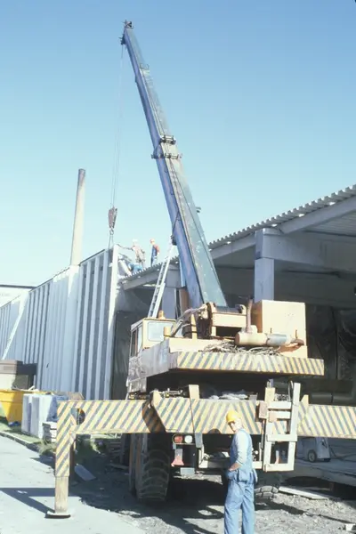 Byggeplass. Utvidelse av Tiedemanns fabrikk på Hovin i 1982-83.