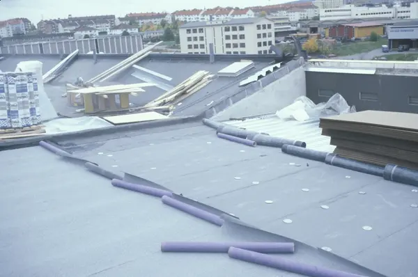 Byggeplass. Utvidelse av Tiedemanns fabrikk på Hovin i 1982-83.