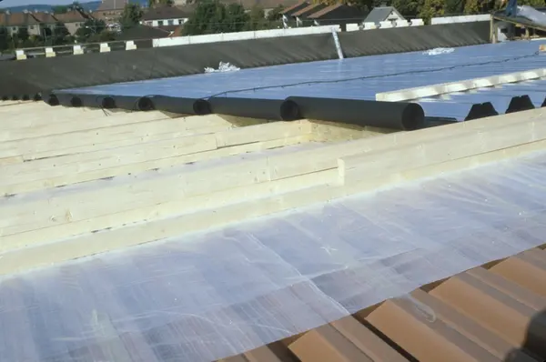 Byggeplass. Utvidelse av Tiedemanns fabrikk på Hovin i 1982-83.