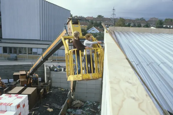 Byggeplass. Utvidelse av Tiedemanns fabrikk på Hovin i 1982-83.