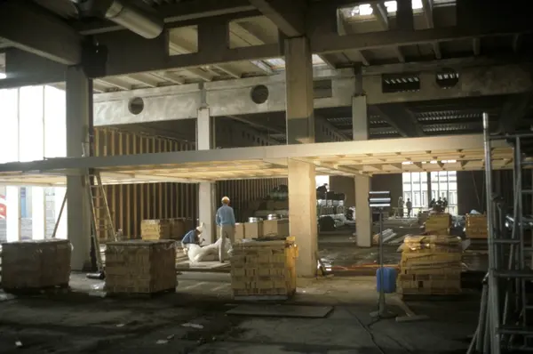 Byggeplass. Utvidelse av Tiedemanns fabrikk på Hovin i 1982-83.