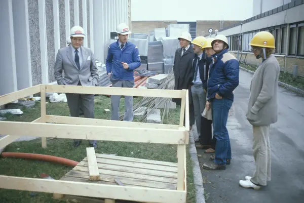 Byggeplass. Utvidelse av Tiedemanns fabrikk på Hovin i 1982-83.
