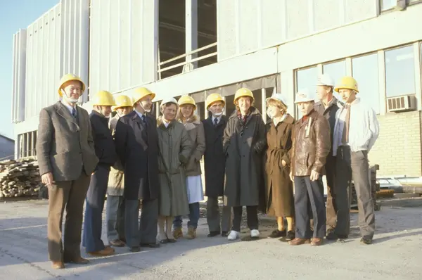 Byggeplass. Utvidelse av Tiedemanns fabrikk på Hovin i 1982-83.