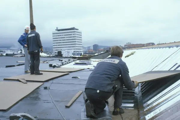 Byggeplass. Utvidelse av Tiedemanns fabrikk på Hovin i 1982-83.
