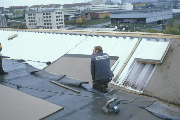 Byggeplass. Utvidelse av Tiedemanns fabrikk på Hovin i 1982-83.