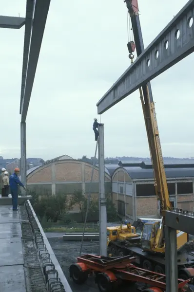 Byggeplass. Utvidelse av Tiedemanns fabrikk på Hovin i 1982-83.