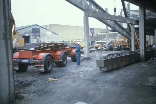 Byggeplass. Utvidelse av Tiedemanns fabrikk på Hovin i 1982-83.