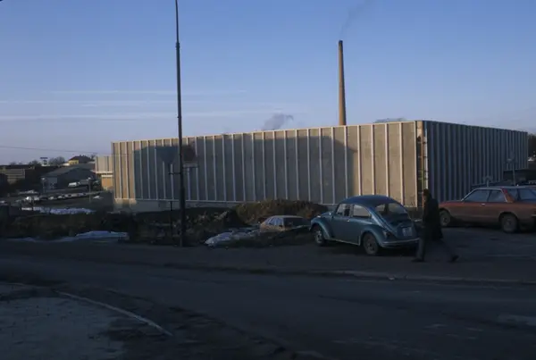 Byggeplass. Utvidelse av Tiedemanns fabrikk på Hovin i 1982-83.